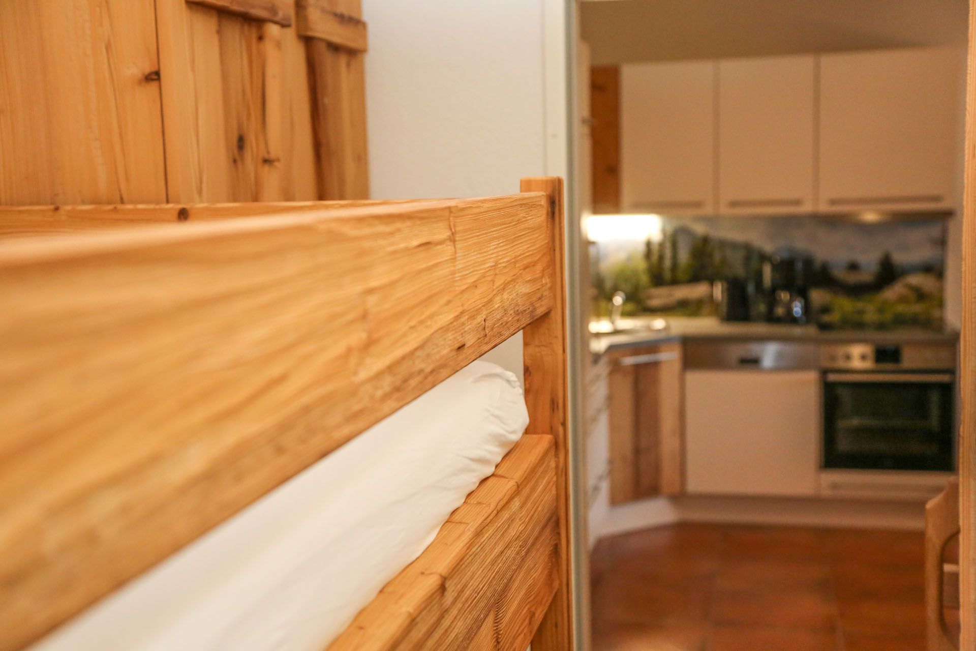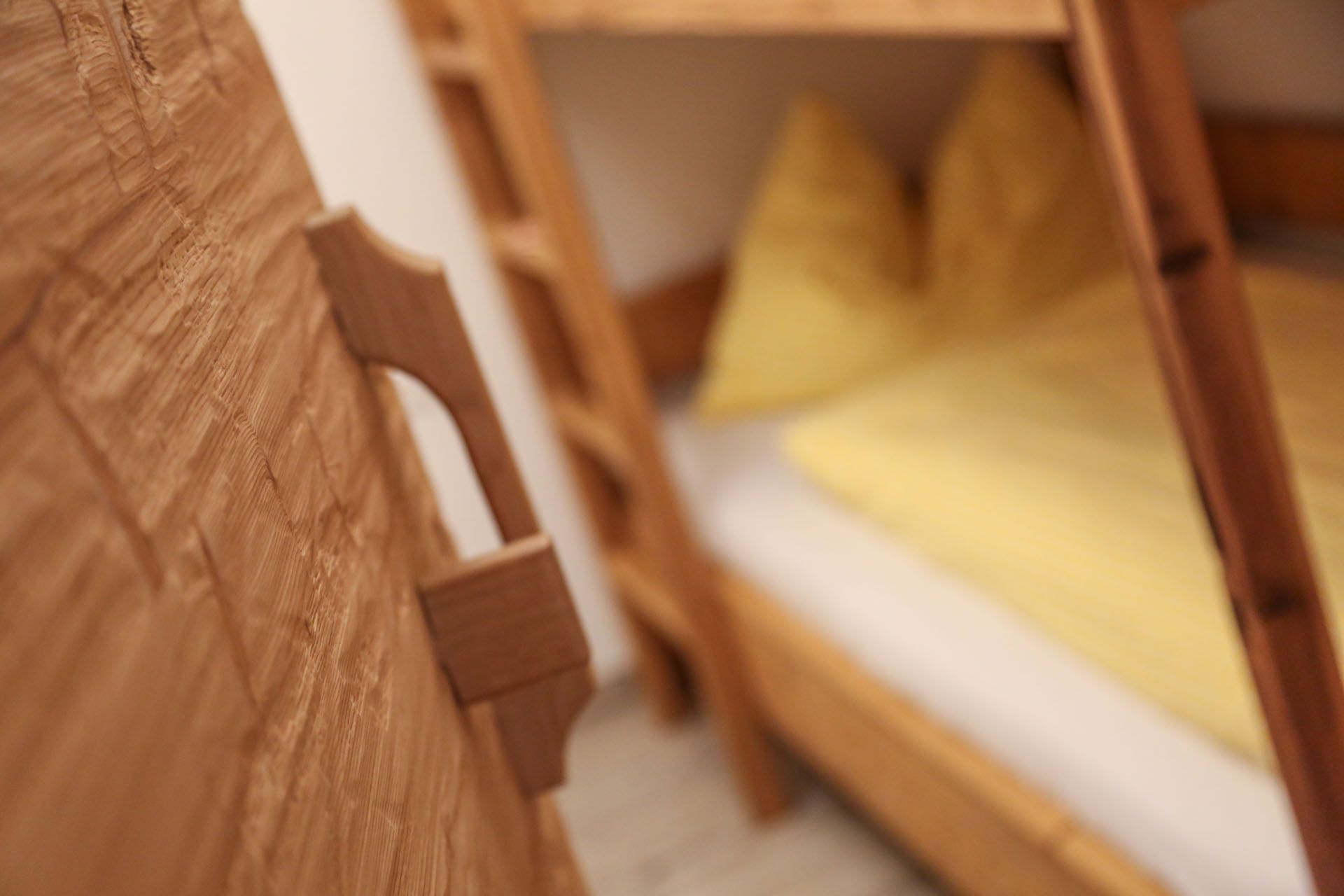 Unsere Ferienwohnungen sind mit hochwertigen Möbeln vom regionalen Tischler eingerichtet und auf Langlebigkeit, Robustheit und Gemütlichkeit ausgerichtet. Die hochwertigen Matratzen in unseren handgefertigten Holzbetten versprechen wohltuenden Schlaf ohne Kreuzschmerzen.